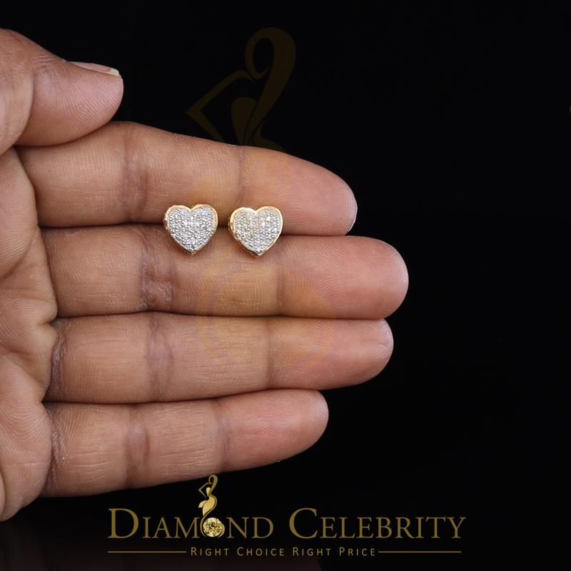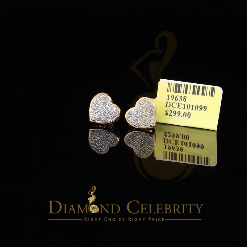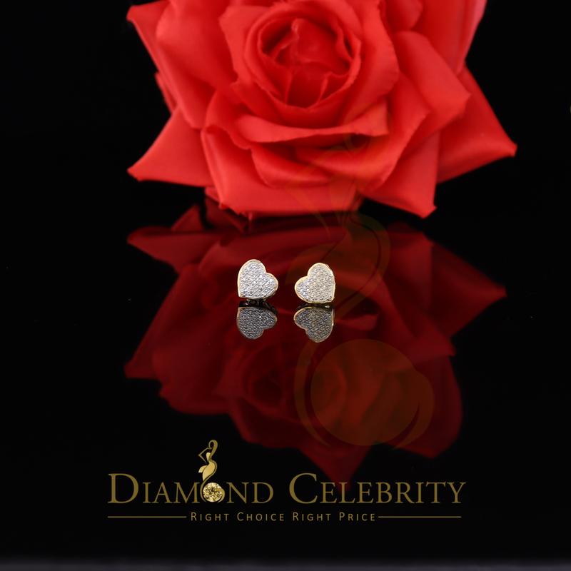 Diamond Celebrity's Micro Pave 0.15ct Real Diamonds Heart 925 Yellow Silver Women's /Men's Earring