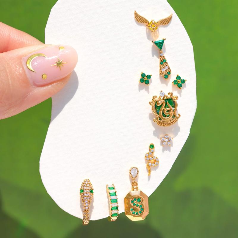 Don't let whispers and Parseltongue scare you. Slytherins are more than just cunning! Embrace the true essence of your house with Harry Potter Slytherin House Earring Set. This striking set embodies the qualities that make Slytherin great: ambition, resourcefulness, determination, and cleverness.