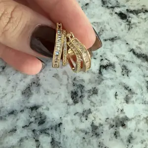 Beautiful earrings! They look just like the picture. A tiny weight but not too heavy. The stone appears yellow but is more of a clear color. Great quality & luxe looking.