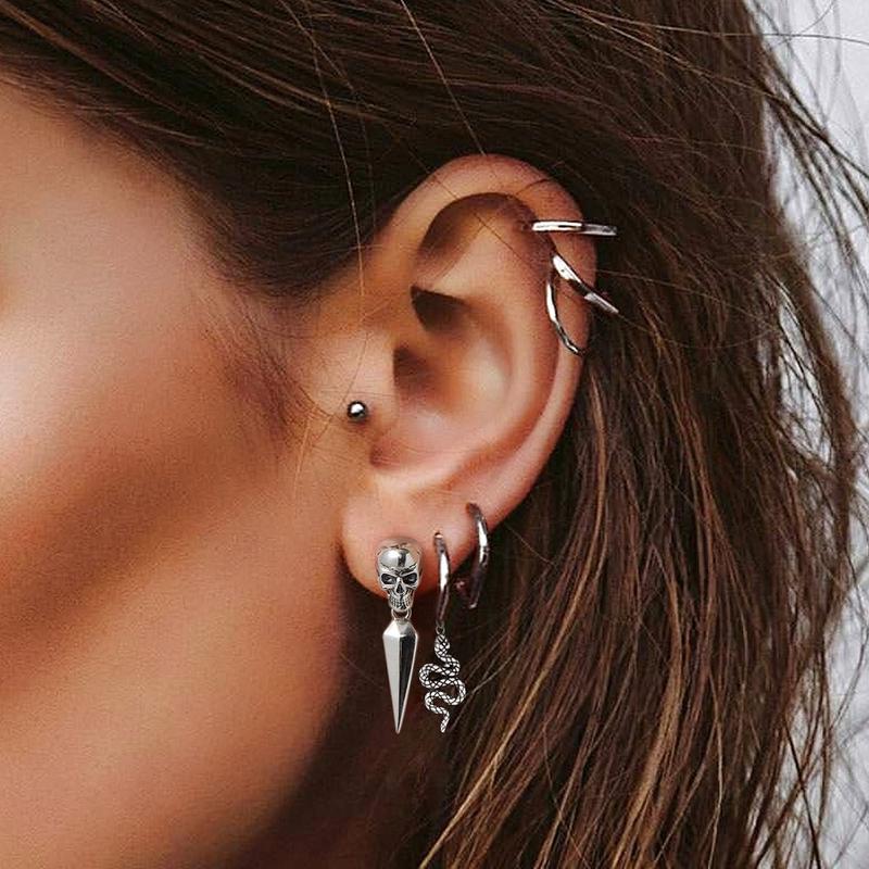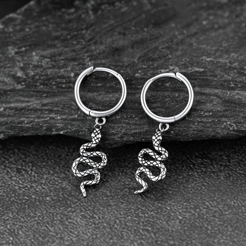 FaithHeart Punk Snake Dangle Hoop Earrings For UnisexFaithHeart Punk Snake Dangle Hoop Earrings For Unisex