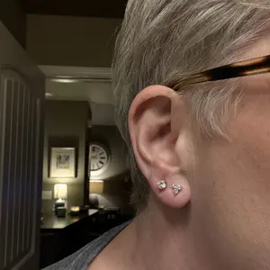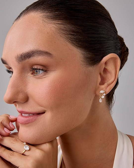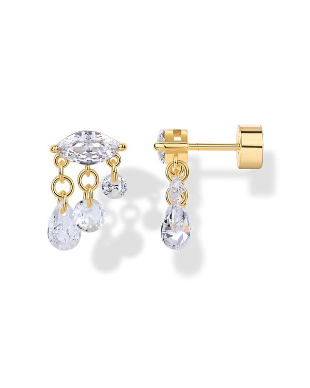 Cluster: 7.5mm x 7mm mini shimmering flat back studs, featuring 2mm round cubic zirconia and a dangling 2mm x 3mm pear-shaped cubic zirconia stone