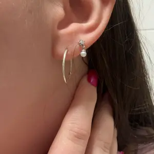 Pearl & CZ: 8.2mm long, featuring a 2mm premium cubic zirconia stone and a dangling 3mm freshwater cultured pearl