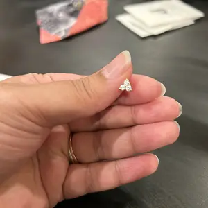 Triangle: 11mm x 5.6mm shimmering flat back studs in rhodium plating, featuring a 4mm x 4mm cubic zirconia triangle on the stud and a dangling 3mm x 3mm triangle cubic zirconia stone