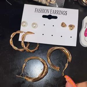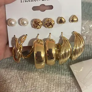 Me encantaron están hermosos ya días quería unos de estos y ahora que los tengo los usaré diario son 10 pares de aretes el precio demasiado baratos y traen diferentes diseños para que los combines con cualquier outfit.