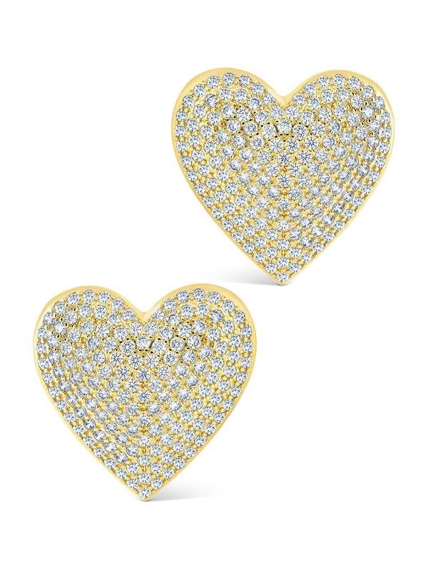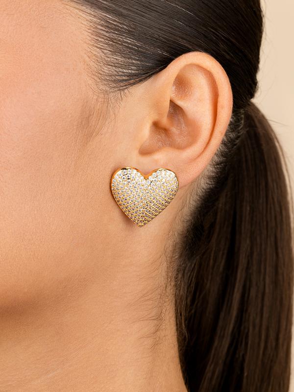 Disco Heart CZ Statement Stud Earrings with Heart-Shaped Design and Sparkling Accents