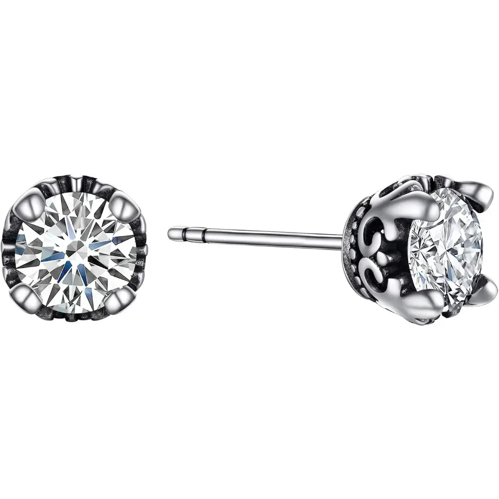 5. FaithHeart Vintage Crown Stud Earrings Cubic Zirconia CZ Studs