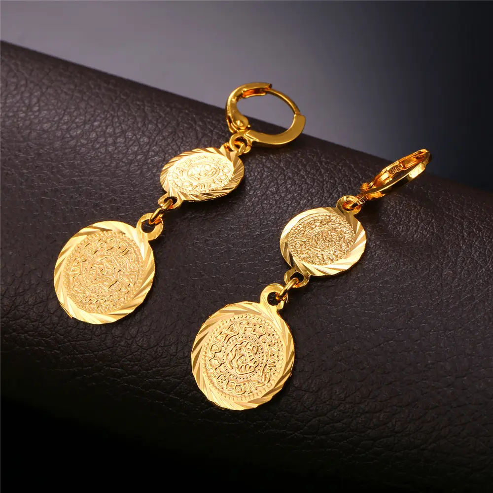 Discover FindChic's Golden Islamic coin pendant earrings, perfect for all genders. Ideal for gifting on birthdays, anniversaries, weddings, and special occasions.