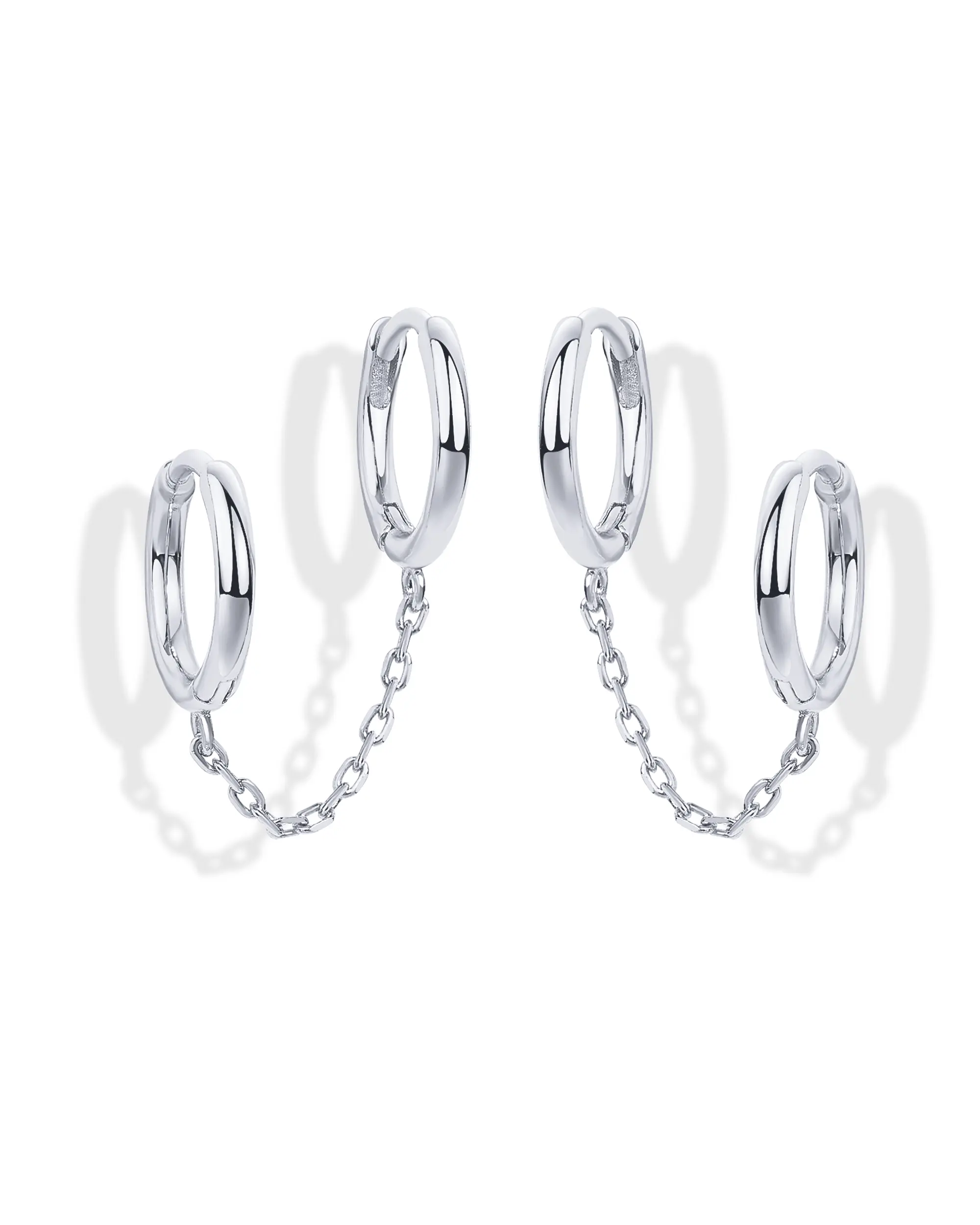 Double Piercing Dangle Chain Huggies: Outer Diameter: 11mm; Chain Length: 15mm.