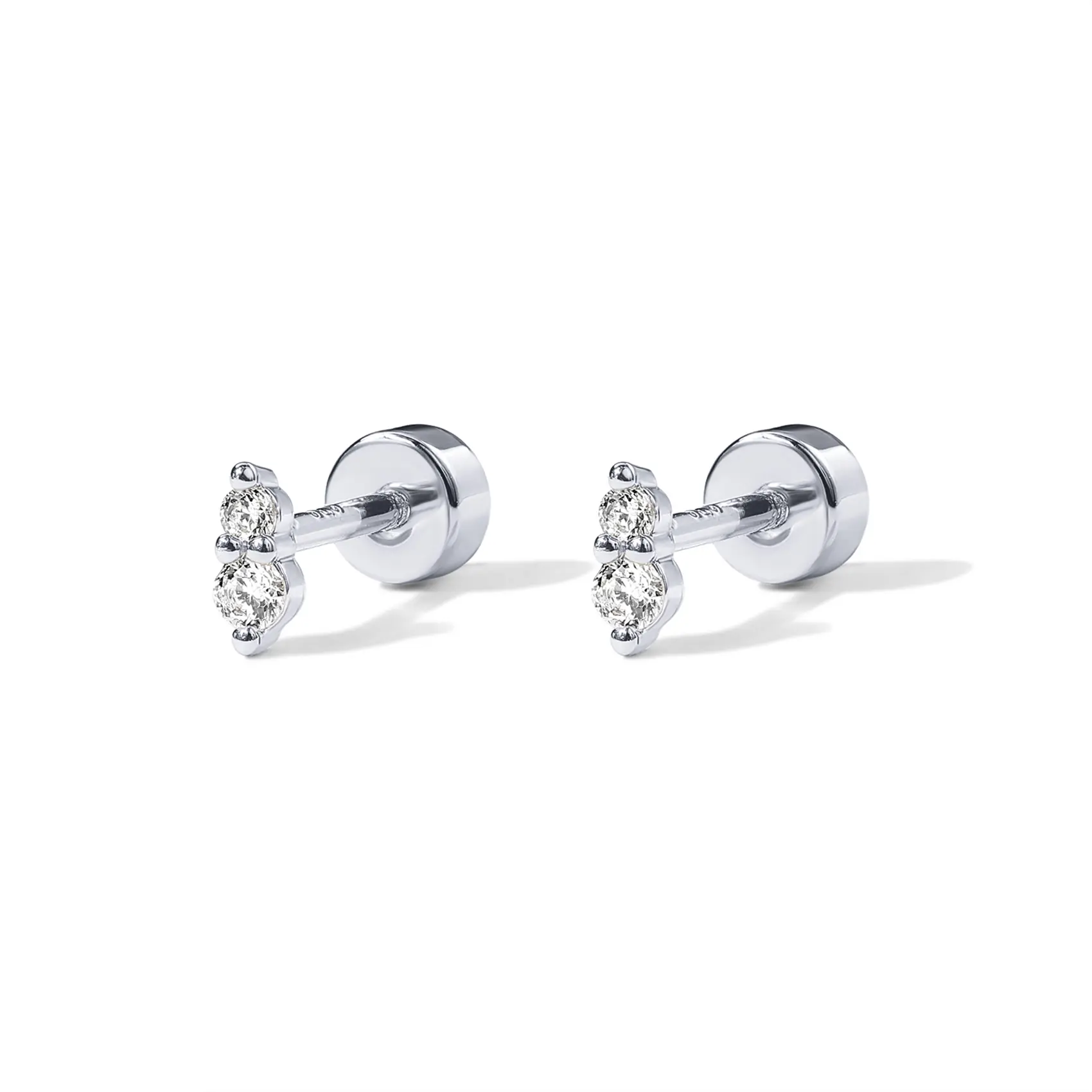 PAVOI Rhodium Plated Double Piercing Chain Huggie & Cubic Zirconia Flat Back Earrings - TikTok Set