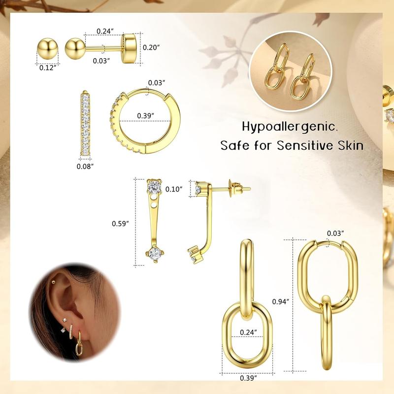 Dainty Earrings - Versatile: Our earrings for women trendy combine cuteness with elegance, keeping up with the latest fashion trends. Including flat back earrings stud, CZ ear jackets/climbers, small huggie hoops, and dangle paperclip link earrings, the hypoallergenic earring stacks set easily match various outfits to showcase your unique style.