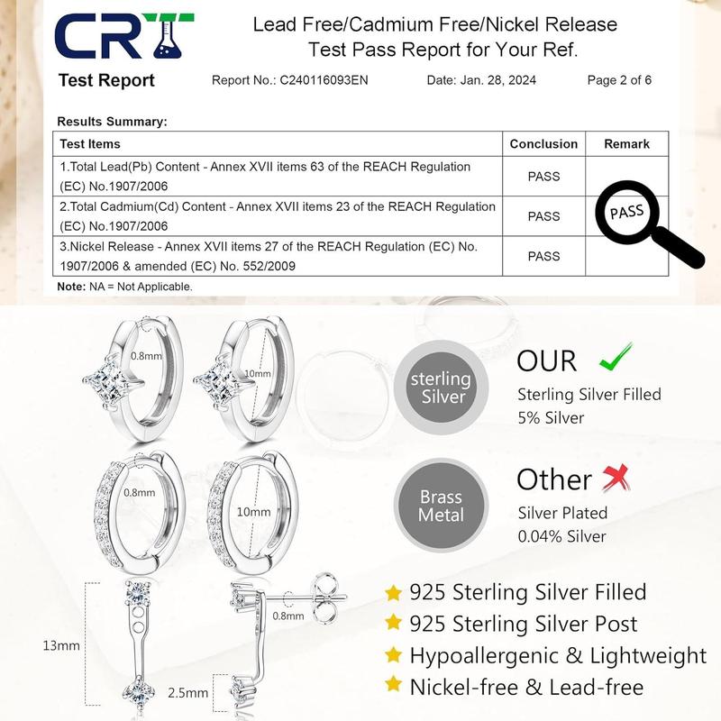 Hypoallergenic Silver Earrings Made with skin-friendly brass plated with sterling silver and S925 sterling silver posts. Nickel-free and lead-free, offering long-lasting shine and color resistance—perfect for sensitive skin.