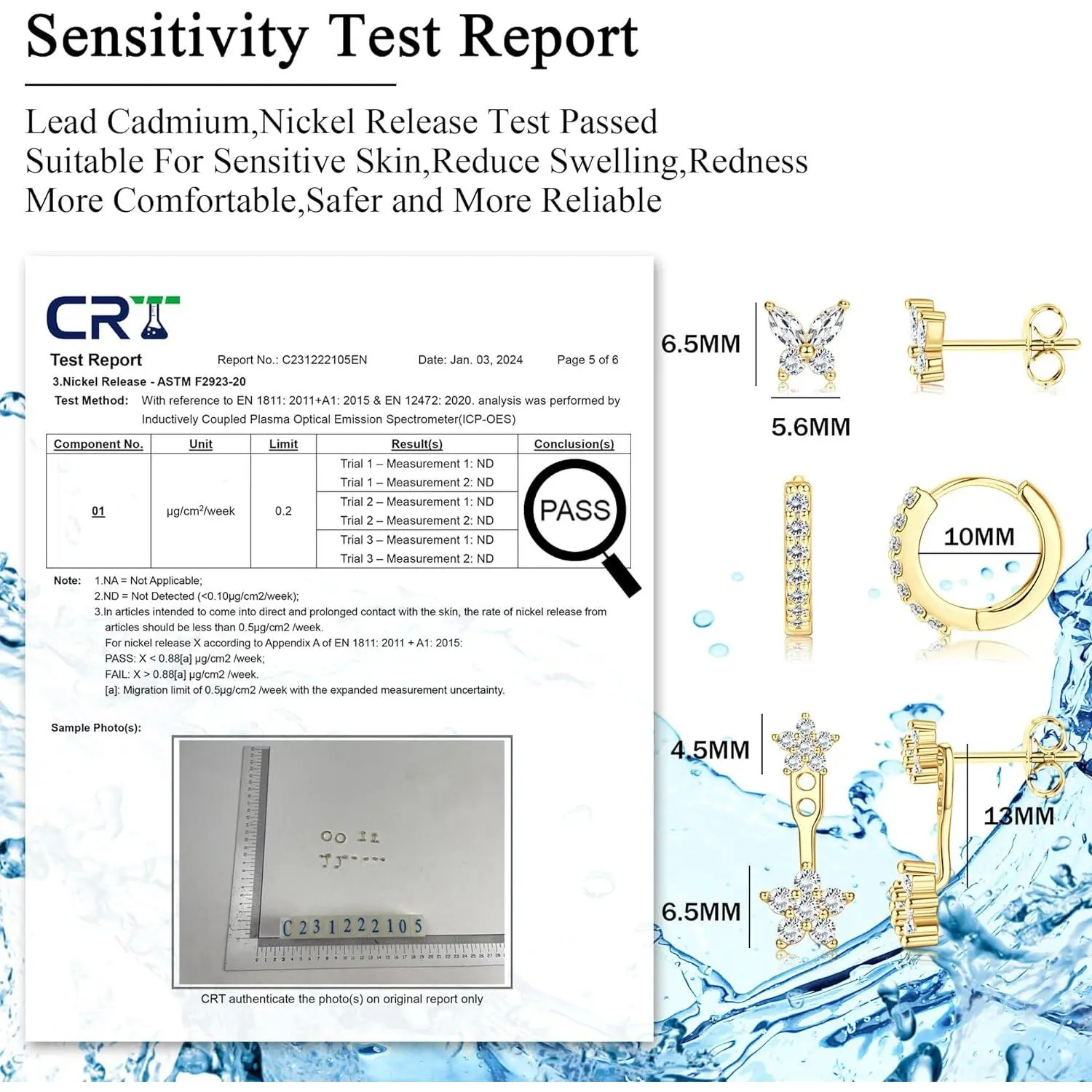 · Material:5A+cz, 316l stainless steel,These studs and hoops set is made of premium 925 sterling silver post, have a smooth surface through careful polishing techniques, nickel-free, lead-free, are especially for who have sensitive ears. And these earrings are set with high-quality cubic zirconia, which have a dazzling sparkle that is reminiscent of real diamonds. This is an extra style of eye-catching appeal to the earrings.