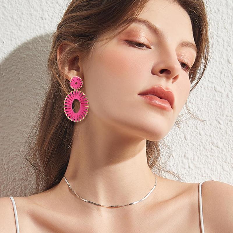Made with high-quality materials, these earrings are comfortable to wear all day long. The vibrant hot pink color is sure to turn heads and make a statement. These earrings are perfect for any occasion, from a day out shopping with friends to a night out on the town. Order now and add some style to your wardrobe!