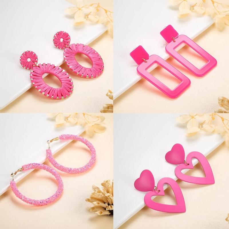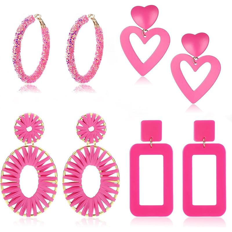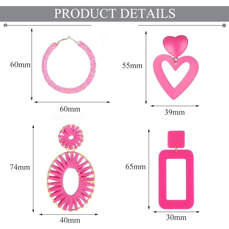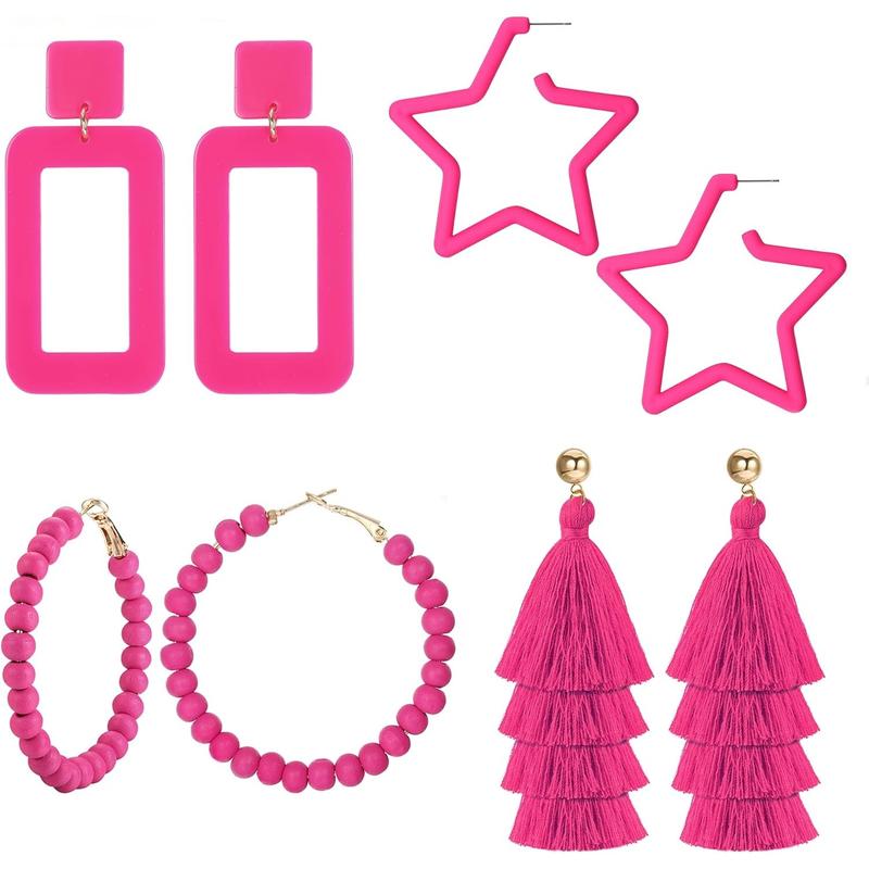 These 4 pairs of Hot Pink Earrings are the perfect statement pieces for every outfit. The Geometric Heart Drop Hoop Earrings add a touch of elegance and sophistication, while the Boho Long Tassel Dangle Earrings bring out your free-spirited side.