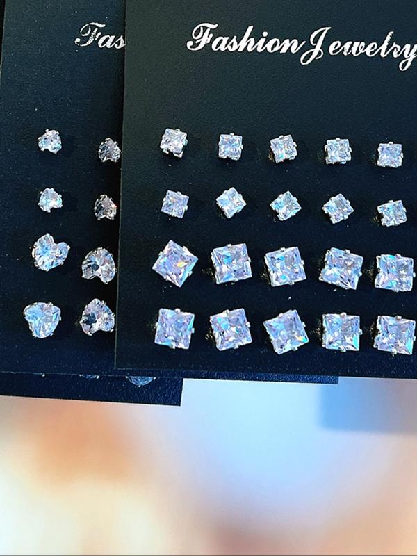 5. Simple Fashion Artificial Zircon Inlaid Stud Earrings, Heart & Geometric Design Earrings, Fashion Jewelry Accessories for Women & Men, Studs Earrings