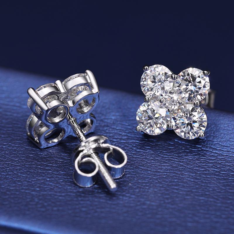 5. 【#E294】925 Silver Synthetic Moissanite Earrings for Women and Men Screw Back Earrings 925 Sterling Silver Four Leaf Clover Exquisite Jewelry Birthday Gift