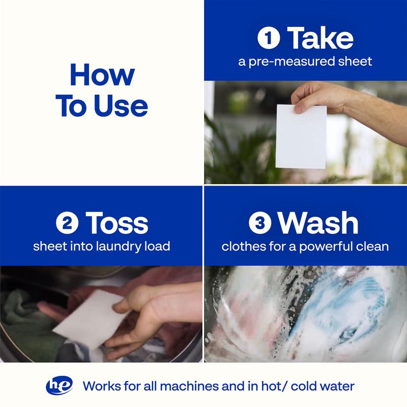 ·Ultra-concentrated laundry detergent sheets dissolve in any cycle, hot or cold.