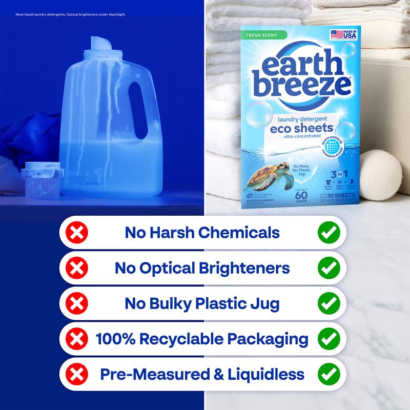 Earth Breeze Laundry Detergent Sheets - Ultra-concentrated, safe ingredients for a powerful clean.