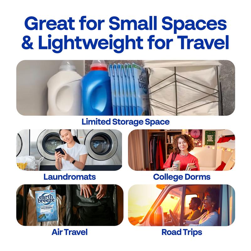 ·Replace bulky plastic jugs with lightweight, microplastic-free laundry detergent sheets.