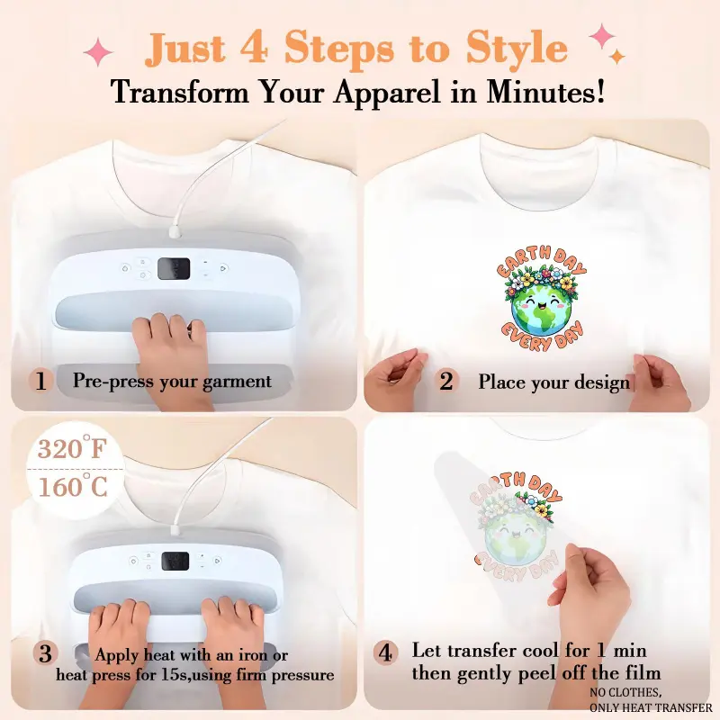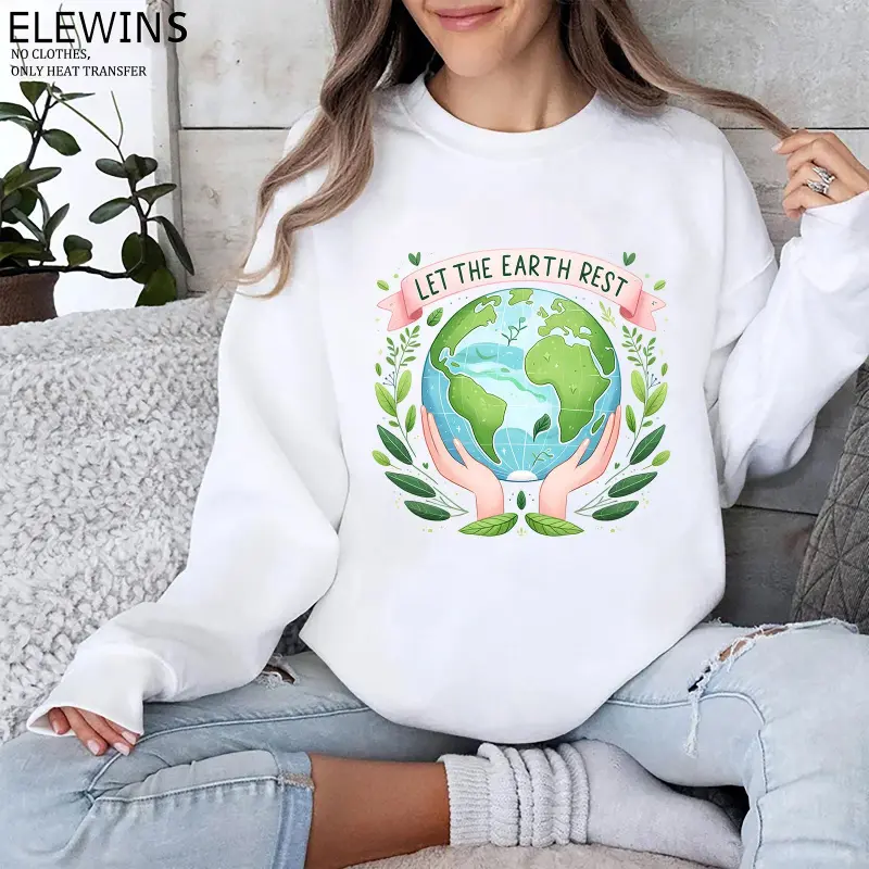 6 Pcs Earth Day Heat Transfer Vinyl Patches for DIY T Shirt Jeans Backpack Family Clothing Hats Crafts Decoration Iron on Stickers