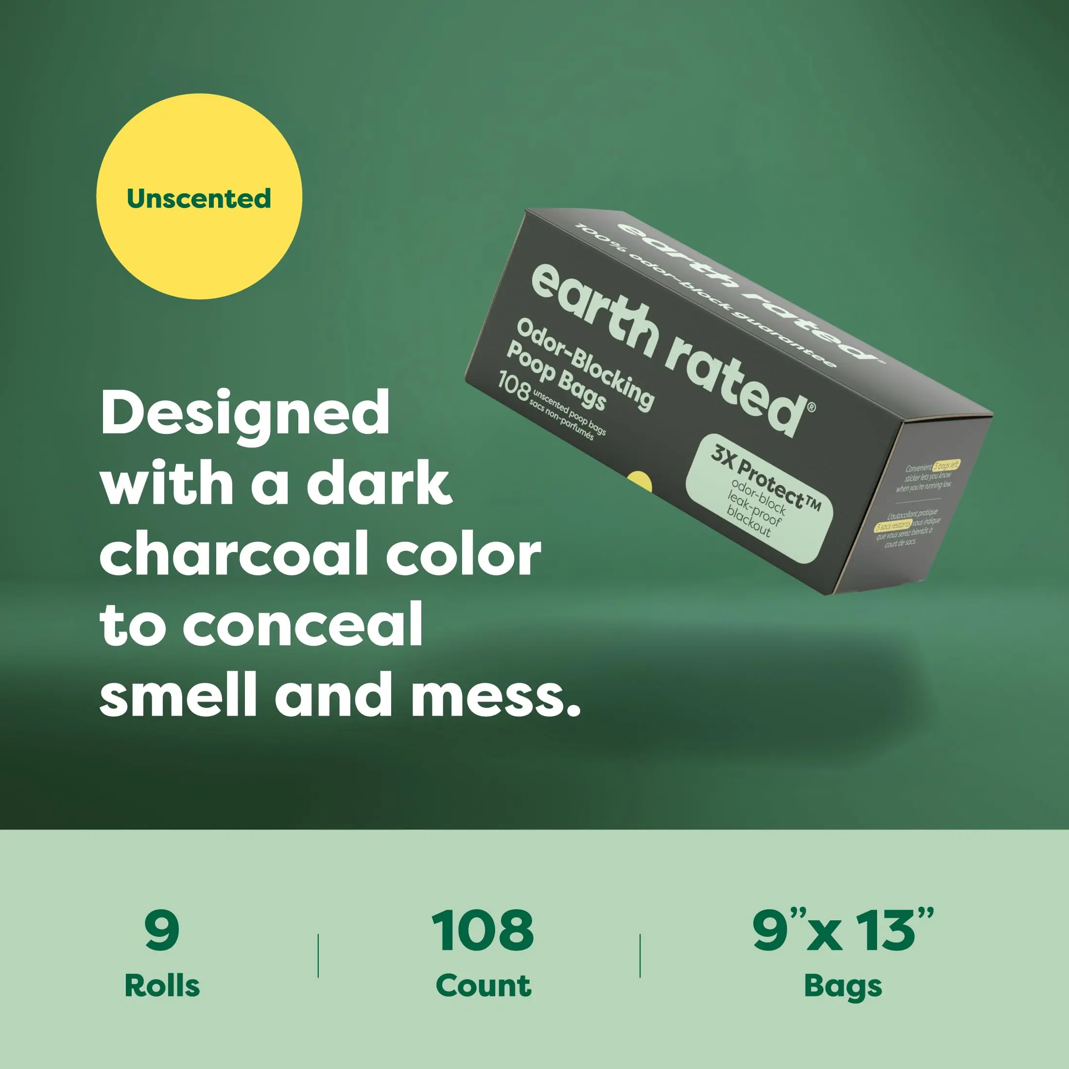 ·Fragrance-Free & Convenient: Unscented, 9” x 13” bags pair perfectly with Earth Rated’s poop bag dispenser.