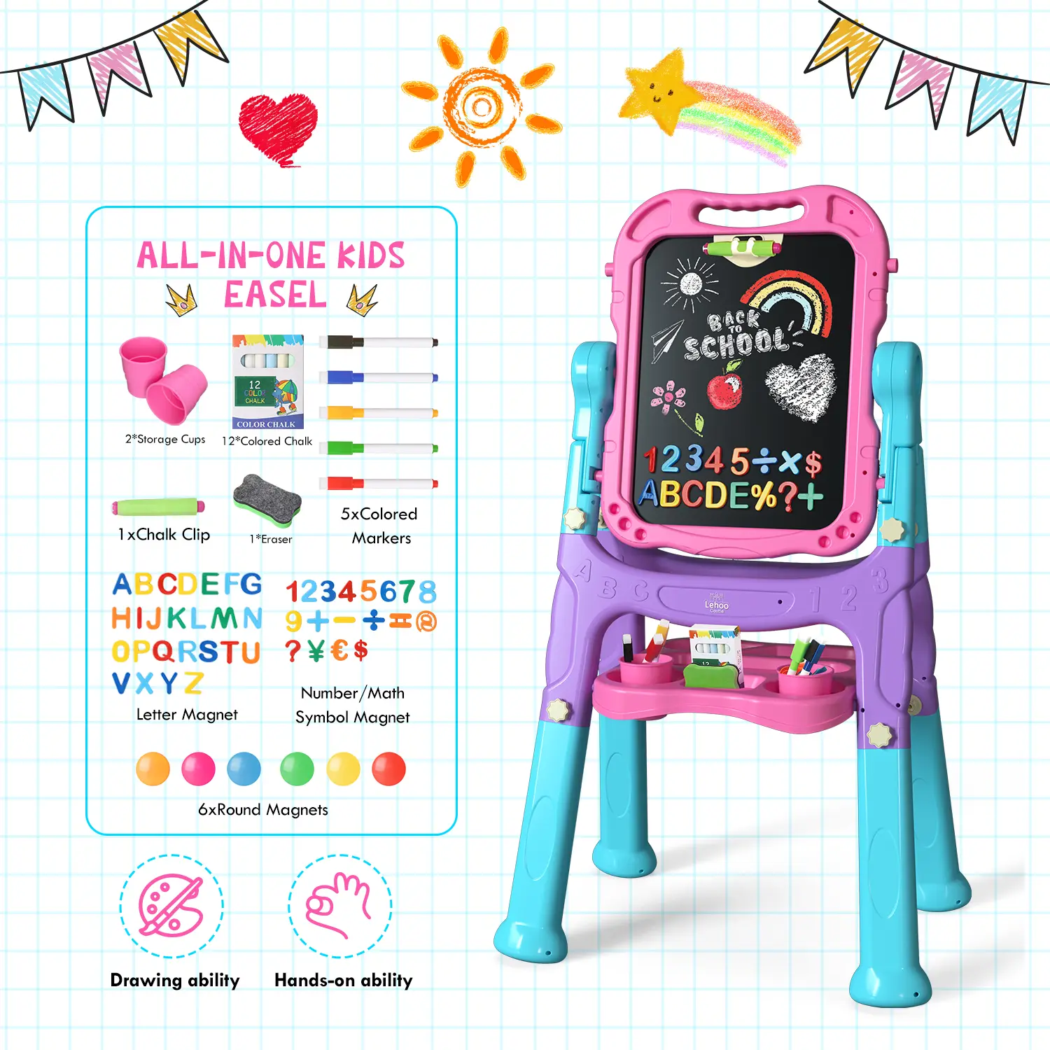 🎨POSITIVE GIFT - is an important period to learn to express and create. This art easel can help little one express their feelings in multiple dimensions when drawing and writing, stimulating imagination, creativity and artistic sense. It must be a great gift for birthday, preschool education, Christmas...