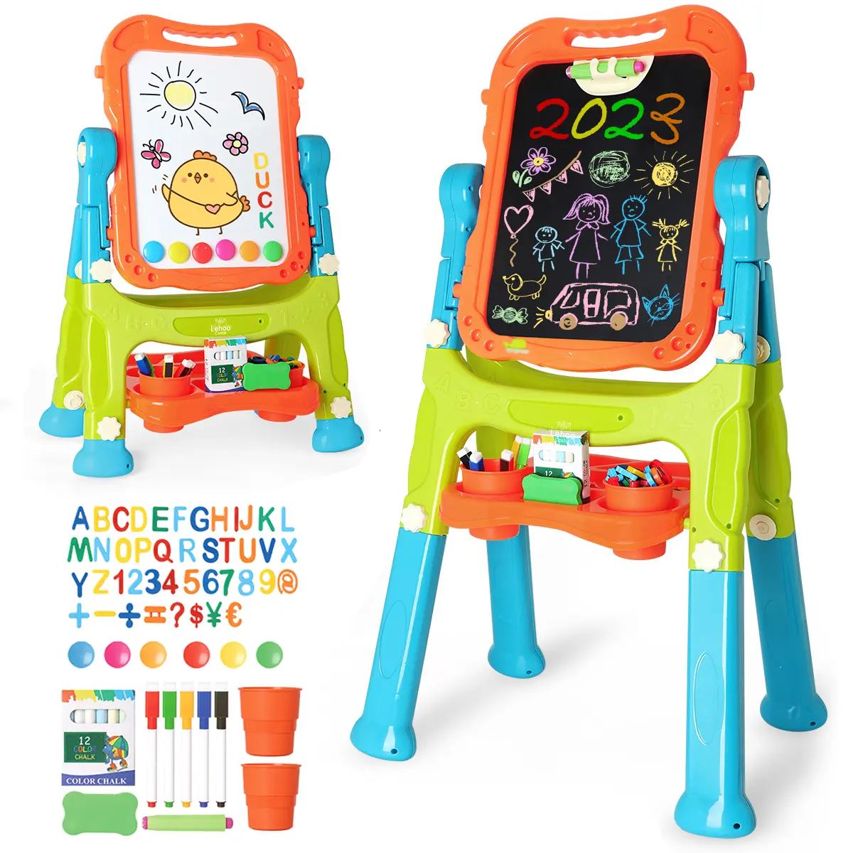 🎨ONE-STOP EASEL & Service - Our artist easel boards comes complete accessories including magnetic number and letter educational sets, colored chalk and dry erase marker, double-sided board eraser, magnets, large organizer trays and more, have it right away and start creating!