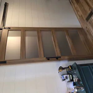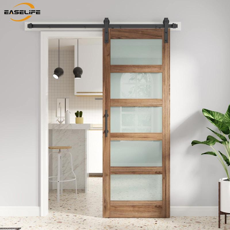 Easelife Sliding Barn Door with Frosted Glass Panels