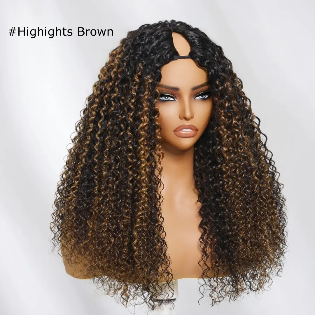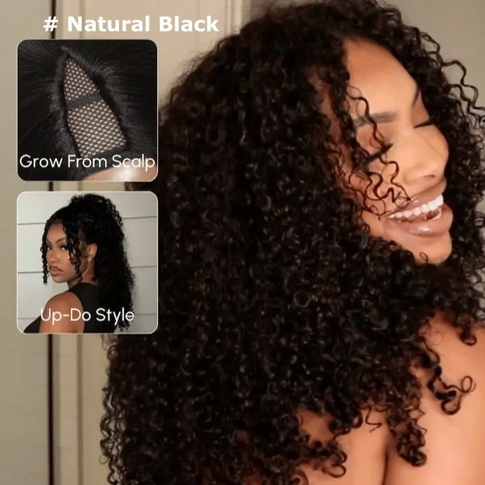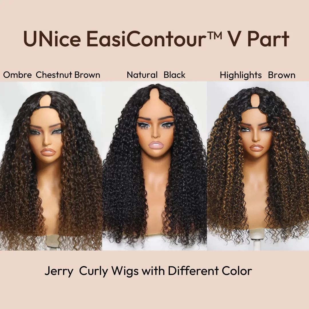 UNice EasiContour V Part Jerry Curly Wig Glueless Blend Natural Human Hair Wigs Beginner Friendly Natural Scalp Daily Using for Women SpringStatements