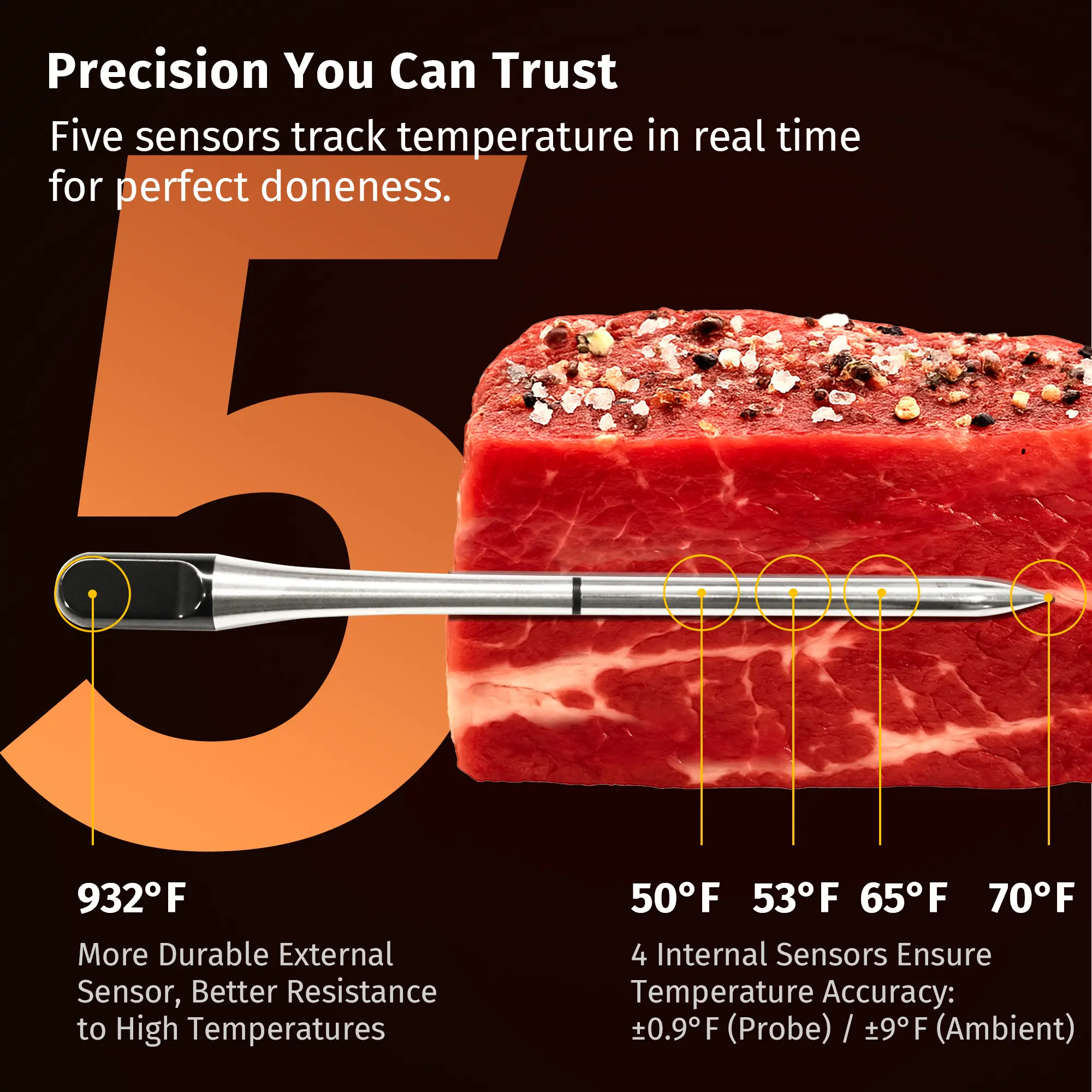 With a heat resistance of -22°F to 230°F (-30°C to 110°C), this probe withstands extreme conditions. The probe is IP68 waterproof and heat resistant. Toss it in the dishwasher when done—no fuss, no hassle.