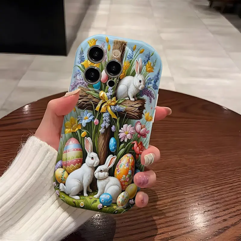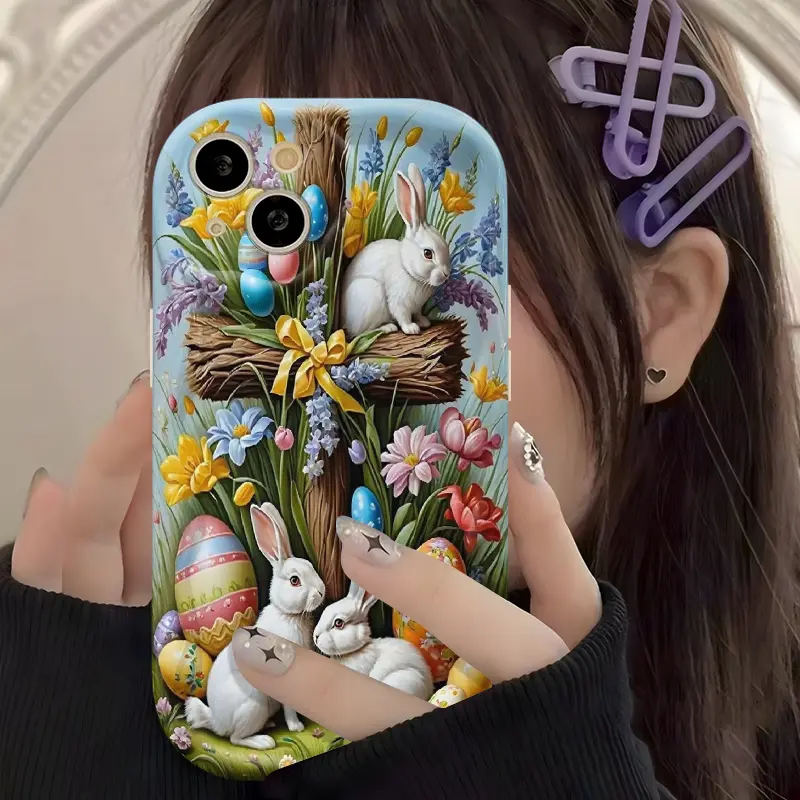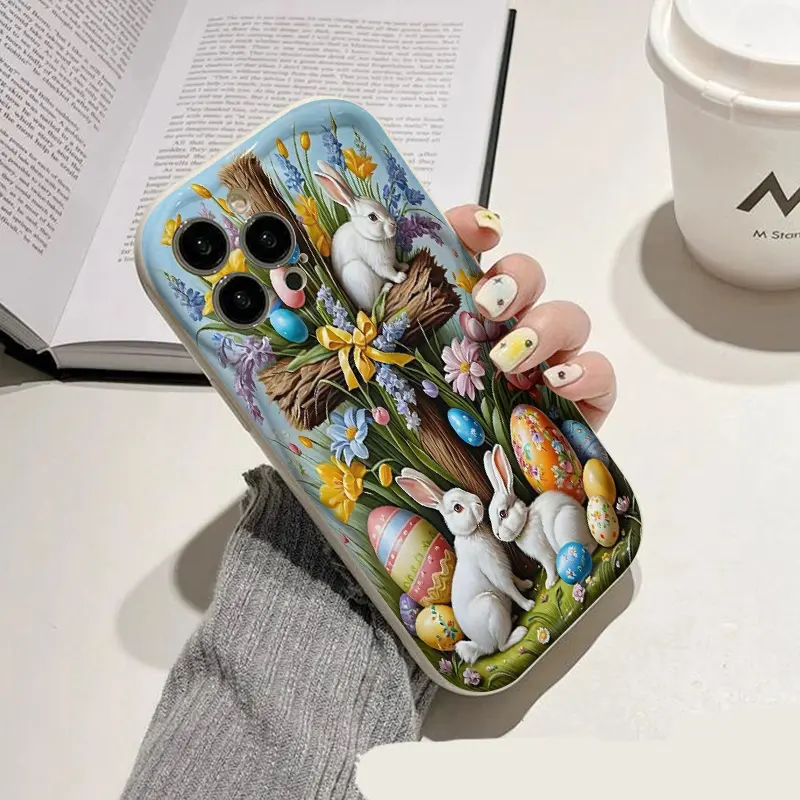 Phone case/cover, Easter bunny and egg phone case for Apple phones, cute 2D cartoon design, compatible with iPhone 17, 16, 15, 14, 13, 12, 11 Pro Max, XS, XR/8/7 and 6. Perfect birthday gift, holiday gift, Valentine's Day gift.