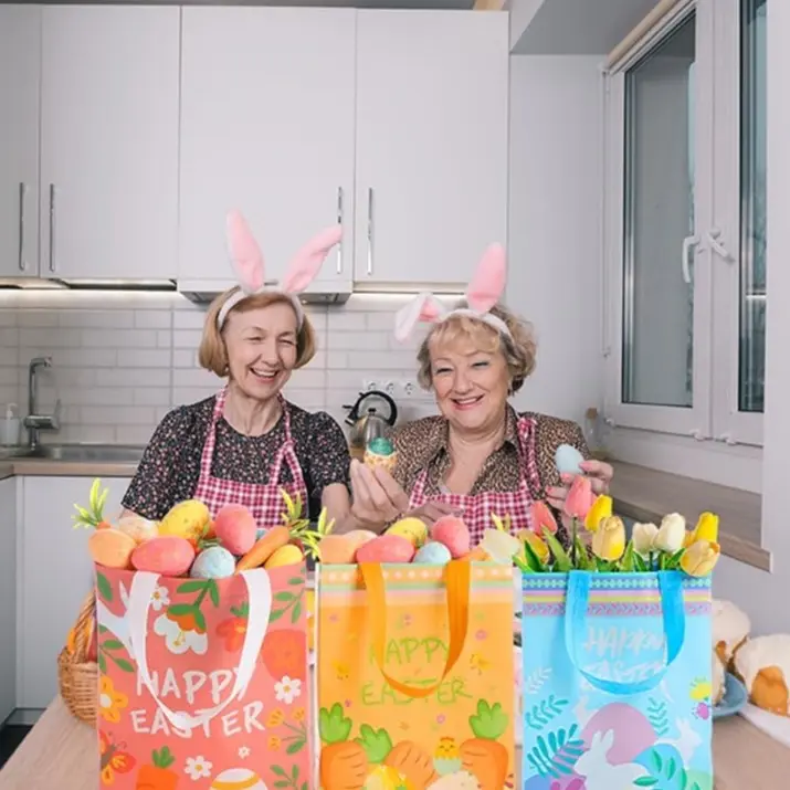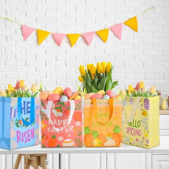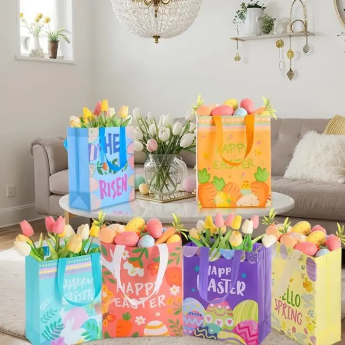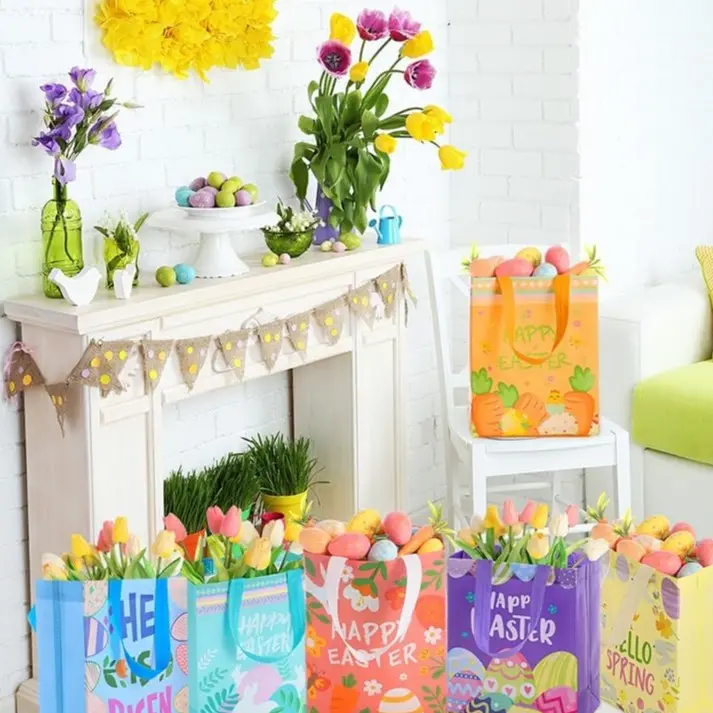 With their exclusive Easter styling, these Easter gift bags with handles encapsulate the traditional spirit of the festival; Designed with the classic carrot and bunny egg patterns, these bags pay tribute to timeless Easter symbols, significantly amplifying your festive setup's appeal.