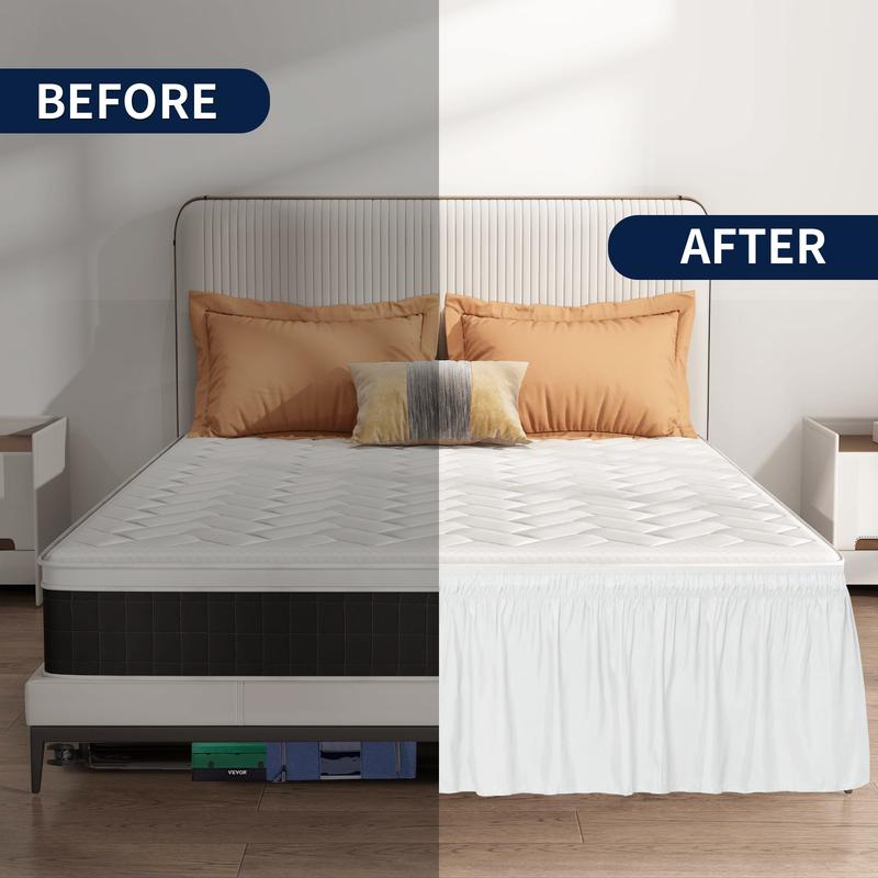 Functions: The stylish ruffled drop can bring a new look to the bed and rejuvenate your bedroom decor.Dust ruffles can effectively hide the bed frame, box frame, bed legs, and underneath storage, keeping the room look neat and tidy.