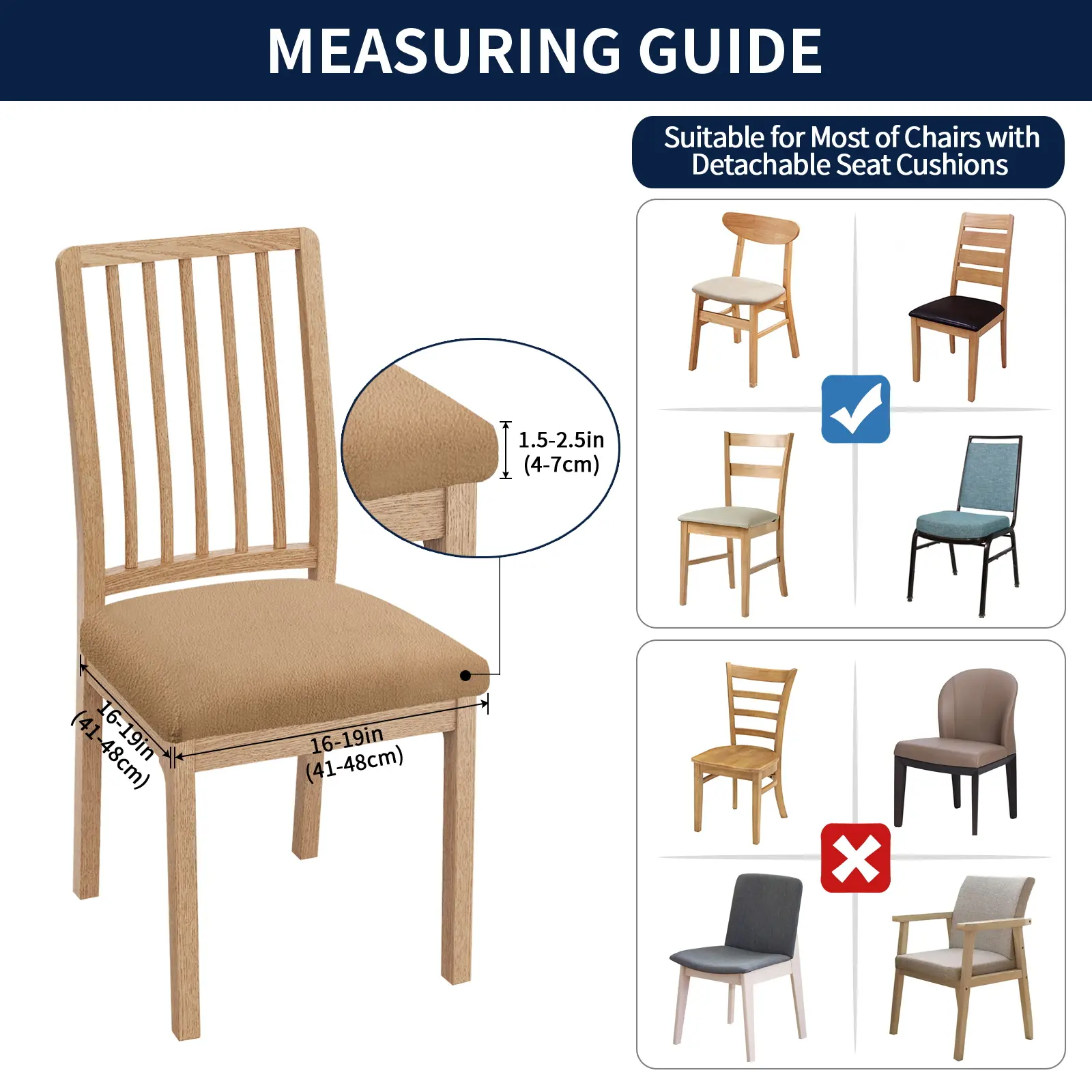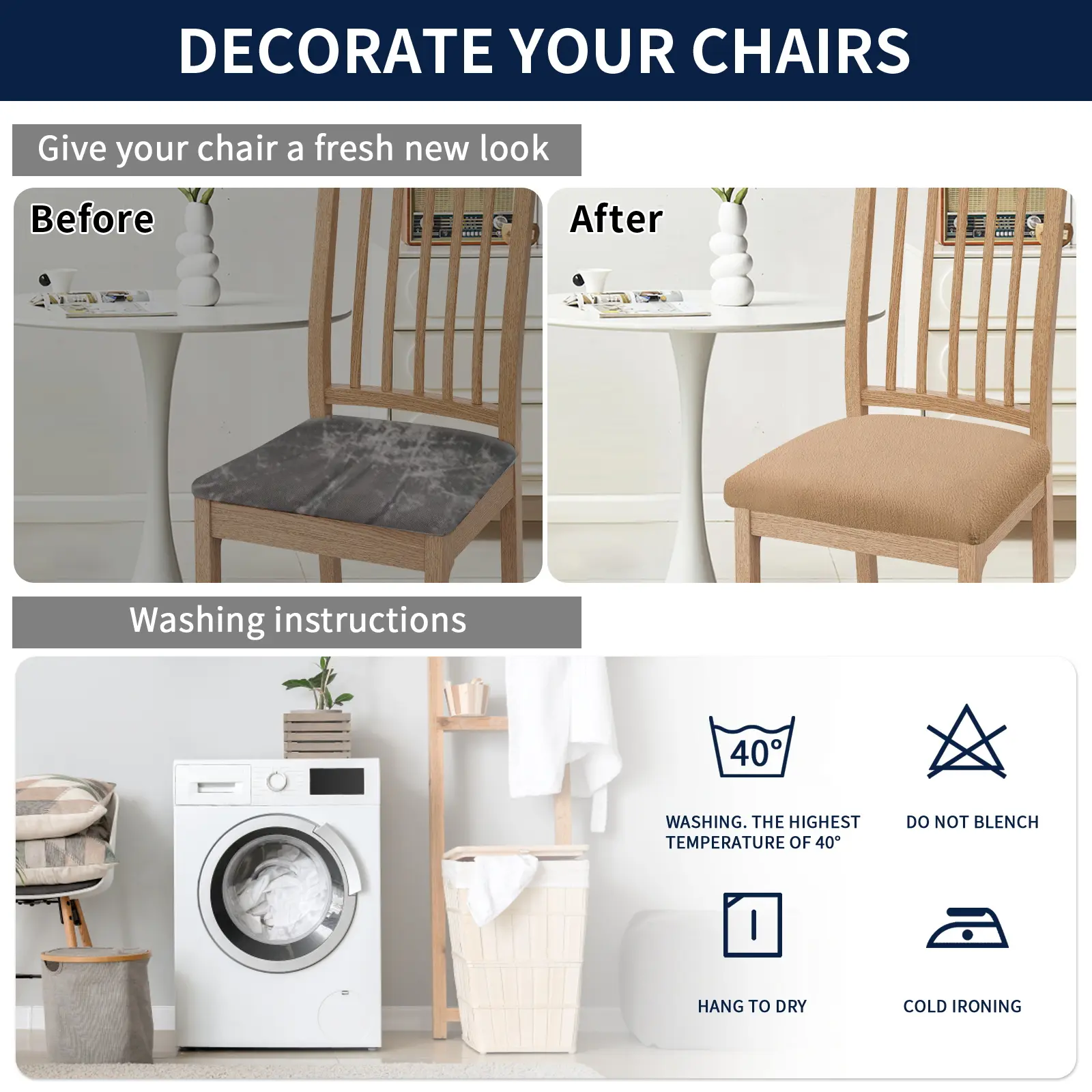 These kitchen chair covers are suitable for upholstered chairs in kitchens, dining rooms, and other places. Our stretch chair covers are suitable for room decoration. Machine washable, do not bleach, tumble dry low, do not iron.