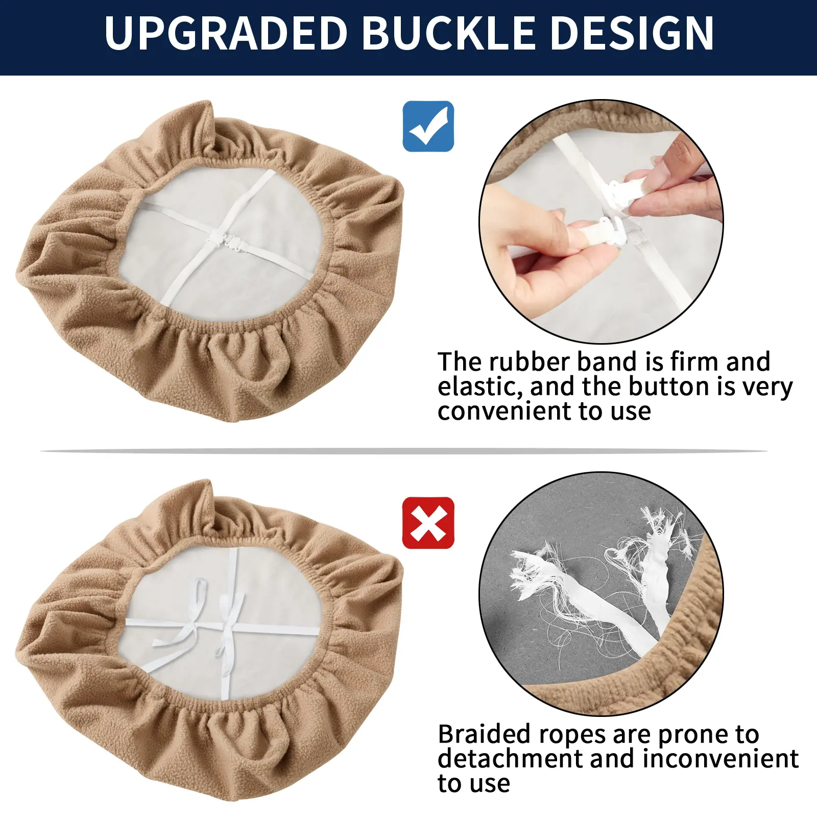 Easy-Going chair covers are made of Fleece fabrics, with a novel and high-quality fleece design on the outside, and a waterproof coating on the inside that is elastic, wrinkle-resistant and durable. The high-stretch material allows the chair covers to fit most chairs easily. (Note: This seat cover is not oil proof)