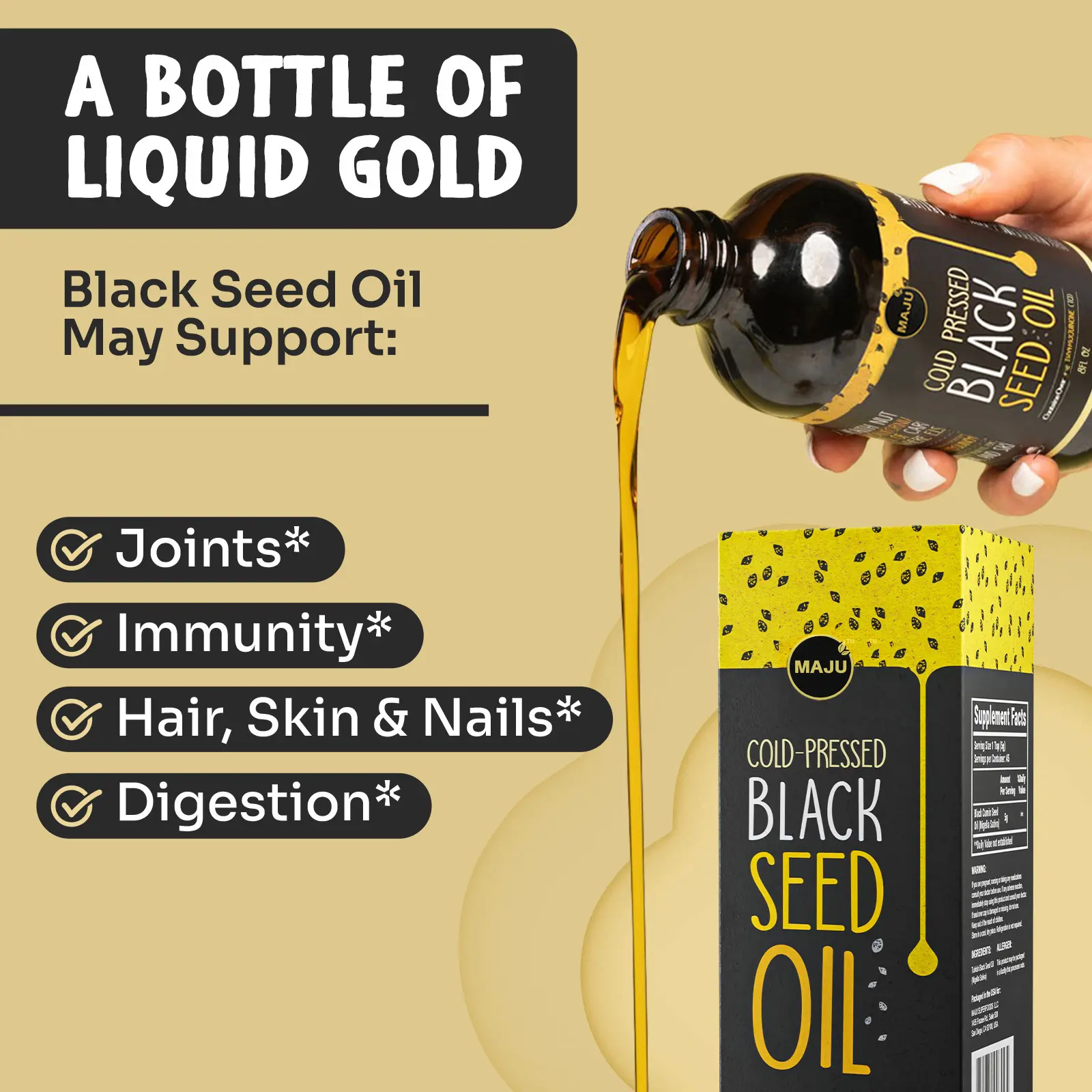 MAJU Easy Immunity Bundle - Black Seed Oil, Nootropic Mushroom Pills & Wild Sea Moss Capsules - Edible Dietary Supplement, Promote Healthcare, Fitness Fermented Beet Maca Root Vitamin