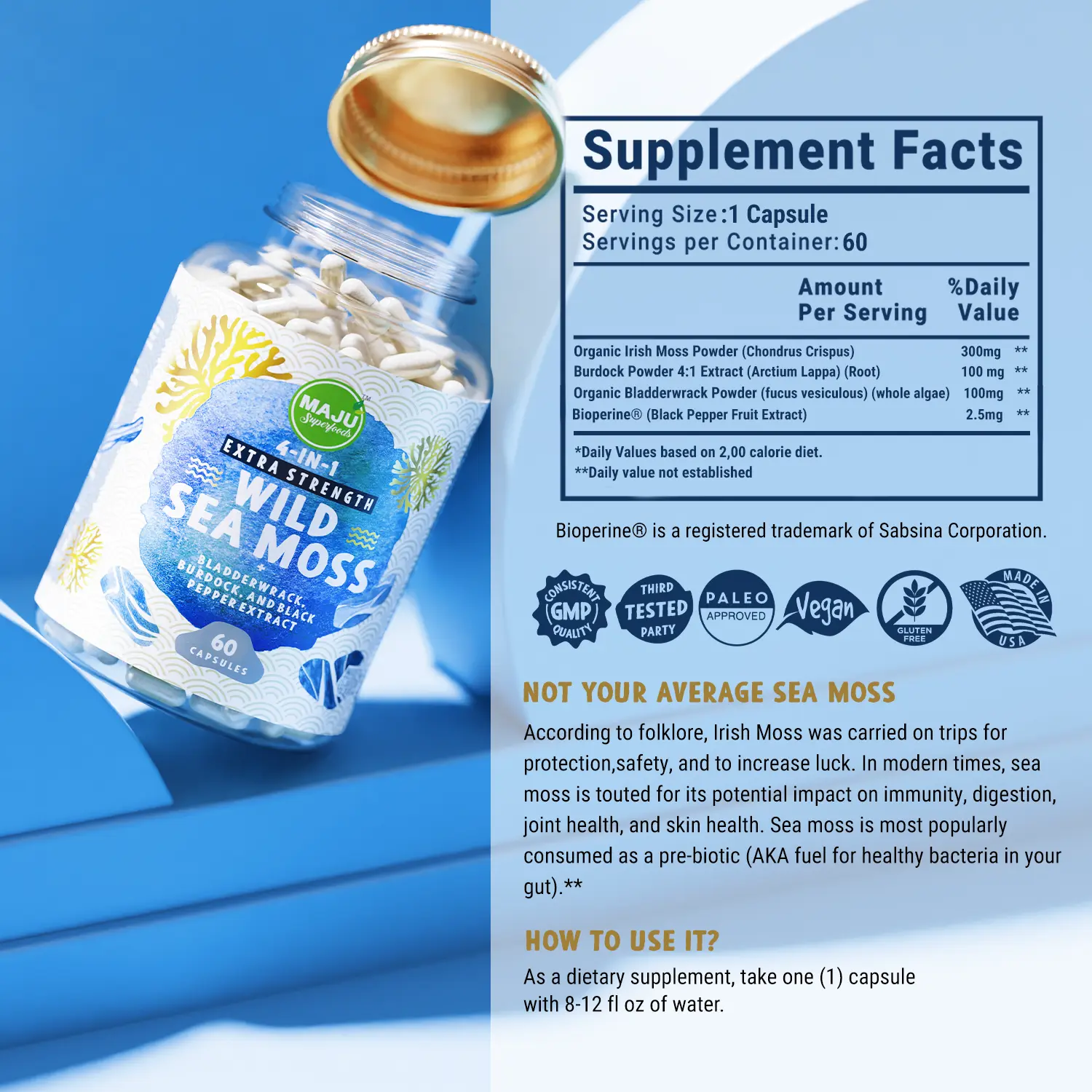 Maju's Easy Immunity Bundle includes the powerful immune boosting benefits of Black Seed Oil, Wild Sea Moss, and Mental Mushrooms. This trio works together harmoniously to provide the body with an abundance of vitamins, nutrients, minerals and antioxidants to support and strengthen the immune system.