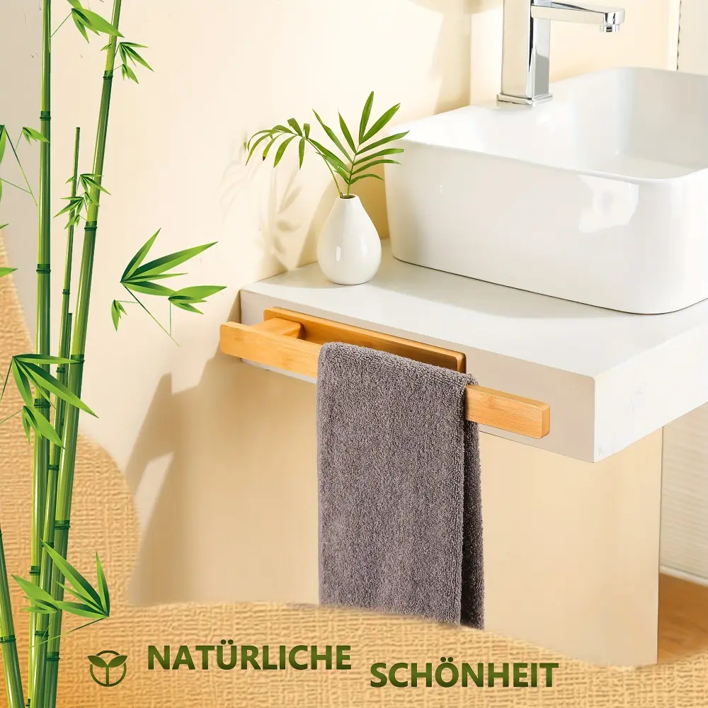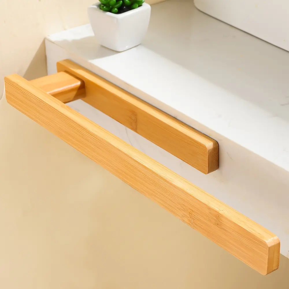 Easy-Install Solid Wood Towel Rack - Space-Saving, No-Drill Wall Mount for Bathroom & Kitchen Storage