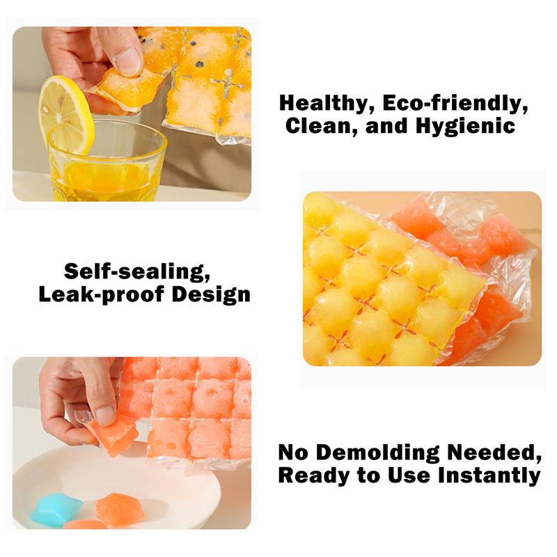 Excellent Self-Sealing - The disposable ice cube bag has self-sealing valve, allowing you to close the mold easily and completely. Store it in the refrigerator for a long time without any odor
