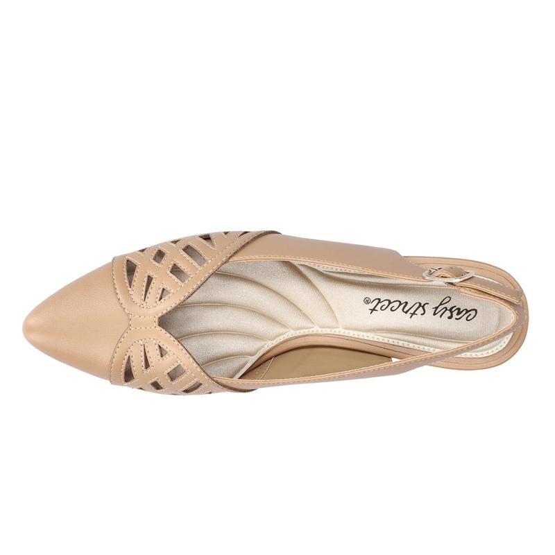 5. Easy Street Womens Bizzy Cut Out Pointed Toe Slingback Pumps Dress Casual Low Heel 1-2" - Beige