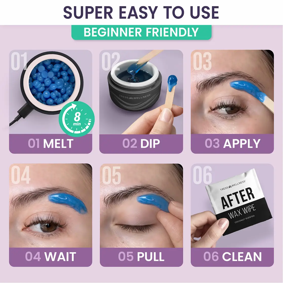 Perfect for brows, upper lips, sideburns, or nose touch-ups, this kit heats up in a few minutes — giving you quick, mess-free hair removal results anywhere. Designed for women who love effortless grooming and men who like to keep it neat and clean.