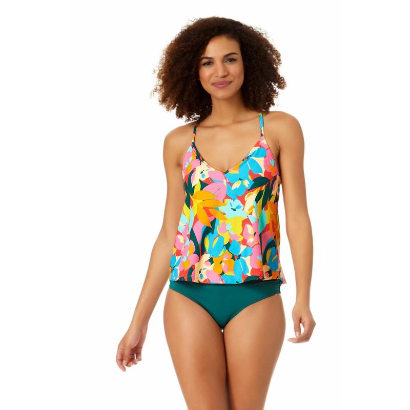 Stand out from the beach crowd with this vibrant Easy Triangle Tankini Top, which features a beautiful floral print. This colorful tankini top is designed with a triangle silhouette to show off your shoulders and neckline. Featuring removable cups, this top provides versatility and comfort for every wearer while the adjustable back straps provide secure support for your water activities. Pair this tankini with our matching Anne Cole bikini bottoms for a complete look!