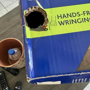 Me llegó el bote el mop pero no me llegó el palo la caja venía con hoyos ahora tengo que comprar el palo