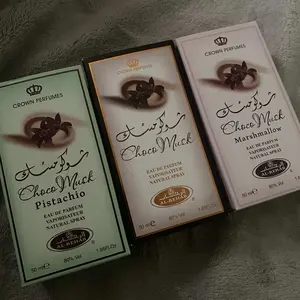 Experience the rich, layered scent of Al Rehab's perfumes. The Choco Musk Pistachio combines chocolate with pistachio, while Choco Musk Marshmallow adds a touch of marshmallow. Each fragrance is designed to captivate and delight. Choose your favorite and indulge in the luxurious feel.