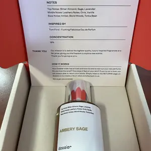 1st Iām not a huge fan of Tom F. Most all is scents are heavy alcohol based. This one starts the same but doesnāt linger long before you start to smell hints of lavender and bitter almond. The sage is strong from the jump. That said it wears down to an amazing mix of blond woods (obsessed) & tonka bean (another undertone man scent) but I love it. Itās totally for the sophisticated woman who is serious about life. Itās totally a ātake me seriousā perfume. I layer it with a softer scent. The packaging is so awesome & it comes with scent card. Also notes are on the bottle.