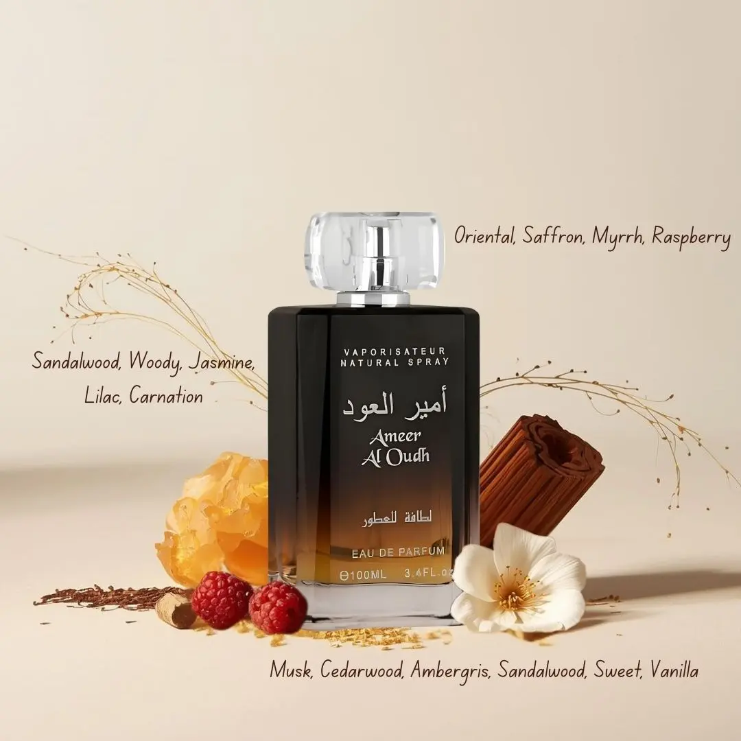Discover the essence of Ameer Al Oudh, a 100ml EDP by Lattafa. This oriental fragrance offers a long-lasting scent experience. Ideal for those who appreciate deep, complex aromas.