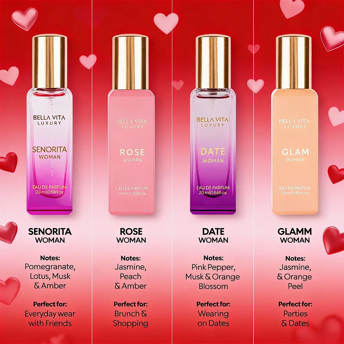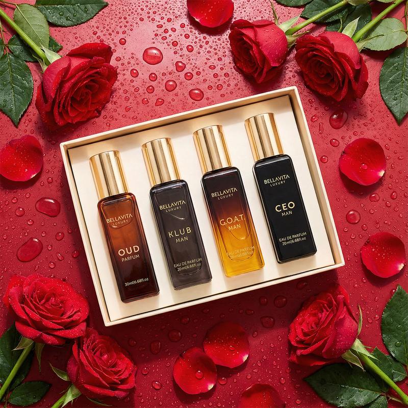 Discover a world of captivating fragrances that will leave you and your loved ones mesmerized! Indulge in a new scent every day for you, & yours, with the Him & Her Gift Set by BellaVita Luxury. Two luxury sets each containing 4 miniatures, including the alluring fragrances of SENORITA, ROSE, DATE & GLAM for Women, as well as iconic fragrances of G.O.A.T., OUD, CEO Man & KLUB Man for men.