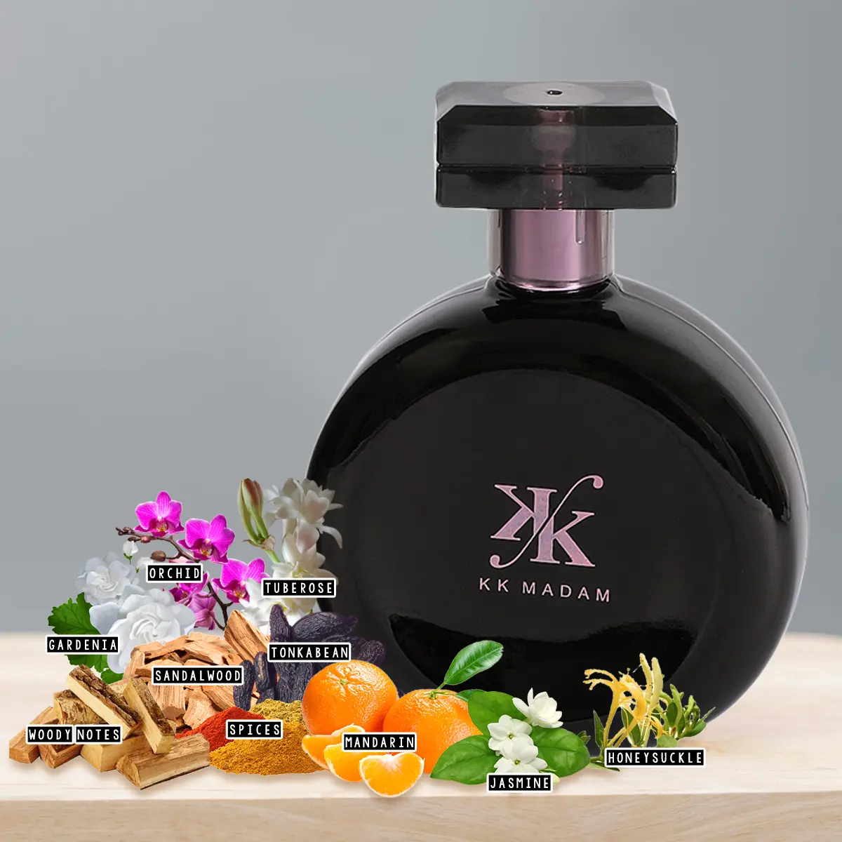 Indulge in the signature scent of KK Madam Eau de Parfum, a captivating white floral perfume crafted for women who love bold, feminine elegance with a touch of sensual mystery.