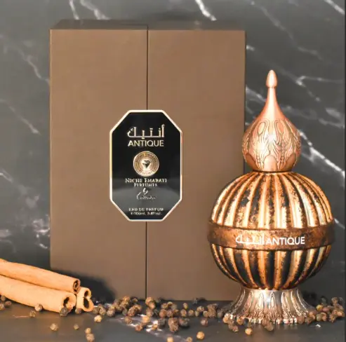 Experience the enchanting allure of Lattafa Niche Emarati Antique, a luxurious unisex fragrance that beautifully encapsulates the essence of the Middle East. This exquisite Eau de Parfum, available in a generous 3.4 oz size, belongs to the Amber Woody fragrance family, making it an ideal choice for those who appreciate rich and warm scents.