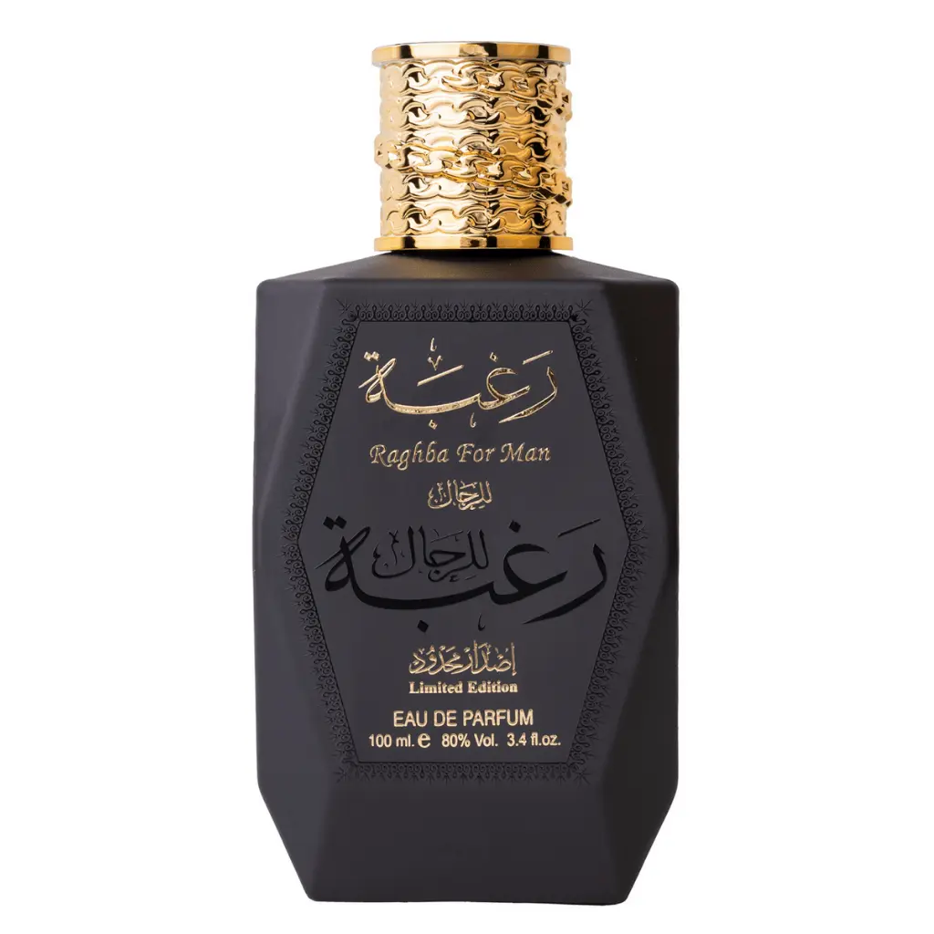 Perfume Raghba For Man Eau de Parfum by Lattafa Perfumes is a fresh, woody fragrance with oriental notes. The top note has a pleasant freshness with lemons, lemon verbena and iris. The heart note of violet notes appears slightly sweet and still features some slight citrus note of the top note. The base is warm and woody with amber, cedar, sandalwood and leather. A beautiful, fresh everyday fragrance that is really well suited for the summer.